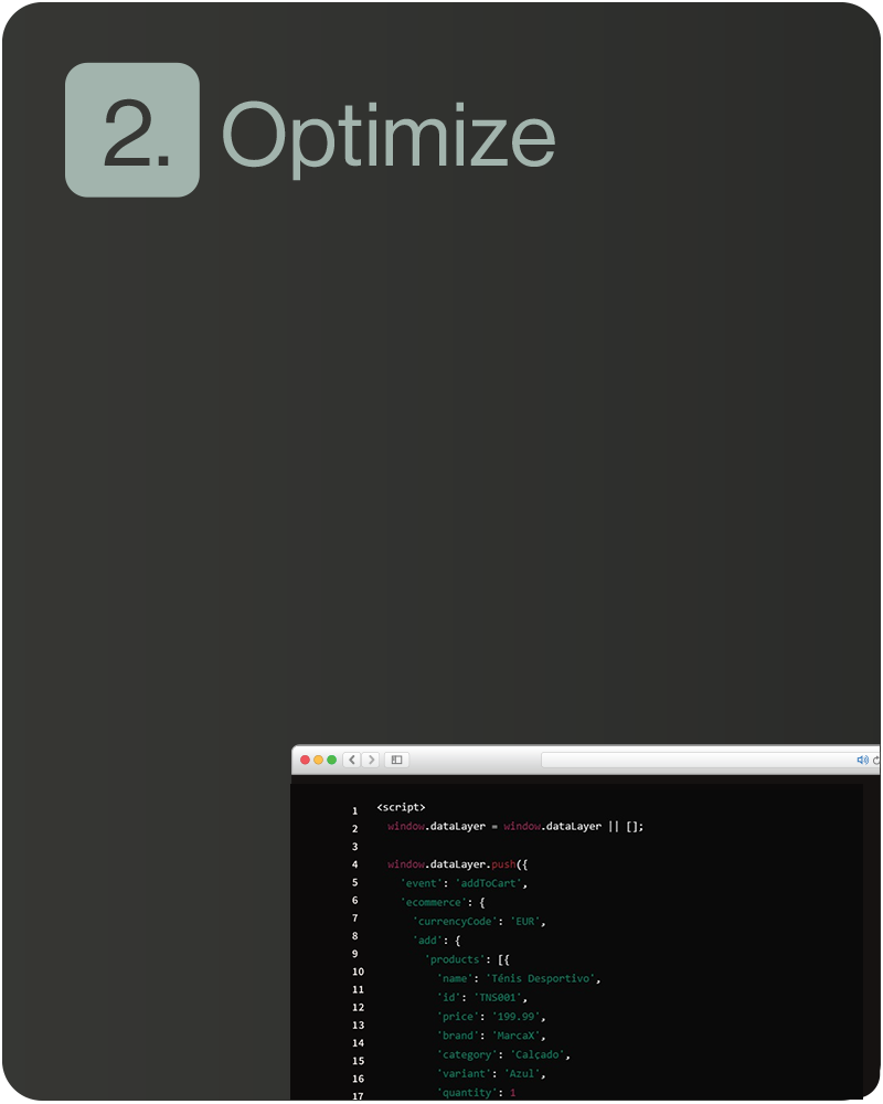 Taking your e-commerce to the next level relies on data. In the Optimize service, all necessary tools are implemented to make your business 100% data-driven.